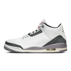 The Air Jordan 3 Cement Grey brings a fresh yet familiar look to the iconic Jordan 3 silhouette. Featuring a clean white leather upper, this sneaker is complemented by Cement Grey accents on the midsole, eyelets, and Jumpman branding. The signature elephant print overlays on the toe and heel add a classic touch, while the visible Air unit in the sole ensures all-day comfort. With its mix of premium materials and timeless design, the Air Jordan 3 Cement Grey is a must-have for sneaker enthusiasts in Rwanda and beyond.